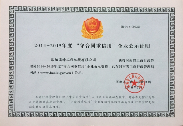 2014-2015守合同重信用企業(yè)